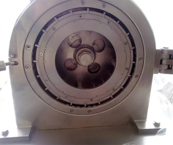 該機(jī)的主要技術(shù)特點(diǎn)是因勢利用粉碎刀產(chǎn)生的動(dòng)壓能迅速的將產(chǎn)品排除機(jī)腔。粉碎時(shí)機(jī)殼內(nèi)腔形成一股氣墊,以減少排料風(fēng)阻,同時(shí)也可以回收系統(tǒng)的尾風(fēng)管相連并可連接自動(dòng)或脈沖式箱體除塵器,其主要作用是避免粉塵飛揚(yáng)和減少物料的損失,起到回收在利用,并減少環(huán)境污染,符合GMP標(biāo)準(zhǔn)。本機(jī)的工作原理是已粉碎齒板與活動(dòng)之間對物料的沖擊為主,同時(shí)也利用刀背產(chǎn)生的渦旋氣流加強(qiáng)對物料的粉碎,由于渦輪刀片轉(zhuǎn)動(dòng)產(chǎn)生大量的氣流,從而可以處理溫度敏感性物料。