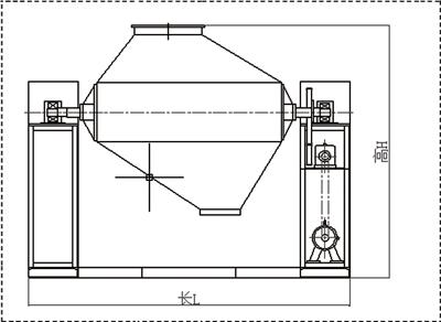 本設(shè)備吸取了國(guó)內(nèi)外同類產(chǎn)品優(yōu)點(diǎn)進(jìn)行設(shè)計(jì)制造。采用機(jī)械轉(zhuǎn)動(dòng),使物料在兩個(gè)不等長(zhǎng)的圓柱筒長(zhǎng)度不等,當(dāng)混合筒體回轉(zhuǎn)時(shí),物料分解和組合的勢(shì)能不同,就形成了軸向逐層交替擴(kuò)散混合;另外由于物料在筒體內(nèi)壁所處的平面不同,相互間亦具不同勢(shì)能產(chǎn)生橫向混合。上述混合作用連續(xù)重復(fù)進(jìn)行,使物料達(dá)到均勻的隨機(jī)混合狀態(tài)。